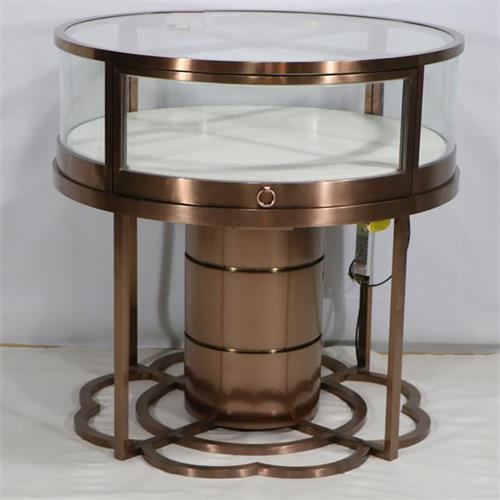 不銹鋼展柜設(shè)計定做廠家為您展示的是2020新款珠寶店周大福不銹鋼玻璃圓形柜臺-高端珠寶展柜廠