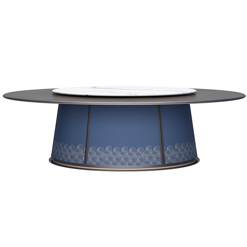 是由天然原料經過特殊工藝,借助萬噸以上壓機壓制(超過15000噸),結合先進的生產技術,經過1200℃以上高溫燒制而成,能夠經得起切割、鉆孔、打磨等加工過程的超大規(guī)格新型瓷質材料。餐桌面或者是轉盤面采用巖板設計,具有輕、耐磨、無滲透等優(yōu)點。
