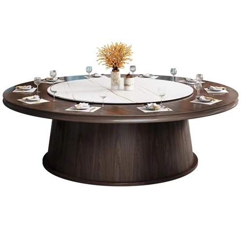 酒店包房新中式實(shí)木電動(dòng)餐桌電動(dòng)大圓桌飯店餐桌圖