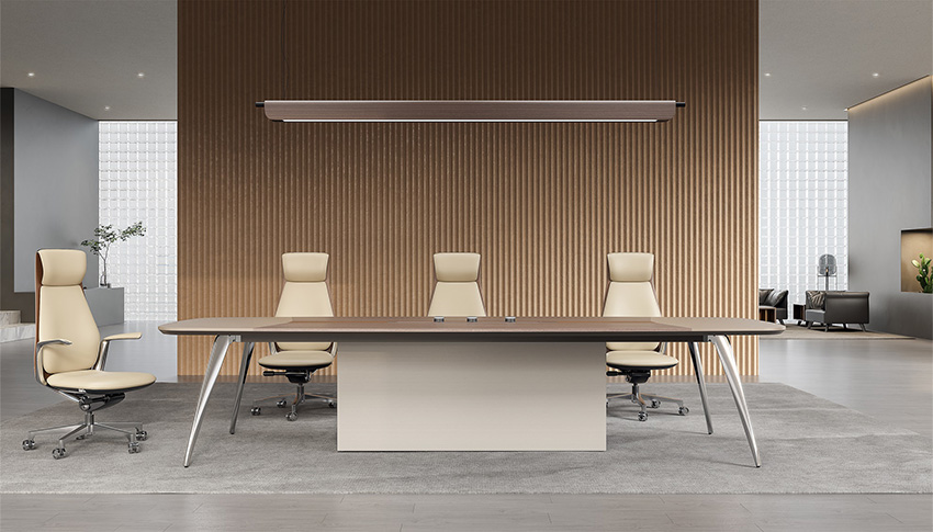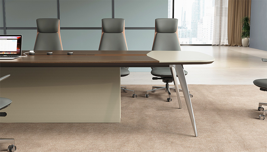 賓利系列產(chǎn)品外觀采用意式輕奢的設(shè)計(jì)風(fēng)格,主附臺(tái)面一體化,雙層面板,整體造型全方位的意式切割風(fēng)格,體現(xiàn)了產(chǎn)品造型的不對稱美,主附配置大小八字鋼腳讓整個(gè)產(chǎn)品既有質(zhì)感又有美感,加上產(chǎn)品搭配爵士胡桃與條紋蘆灰的配色,充分體現(xiàn)產(chǎn)品高品位的氣質(zhì),是現(xiàn)代都市辦公空間最佳選擇之一