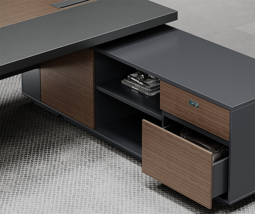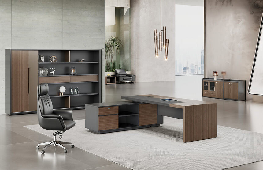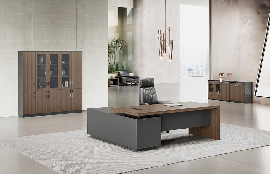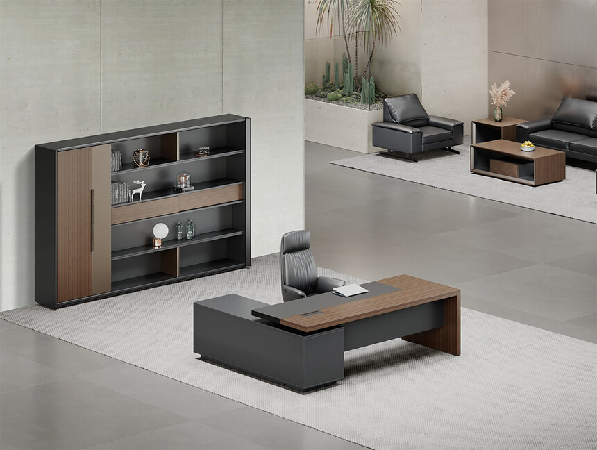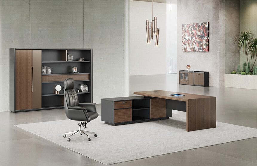 明哲系列辦公家具,采用直紋胡桃和星空灰實(shí)色漆元素,高檔實(shí)木質(zhì)感飾面,深邃飽滿,紋理清晰,內(nèi)蘊(yùn)深厚。搭配簡(jiǎn)約端正的造型設(shè)計(jì),臺(tái)腳的斜切裝置,還有產(chǎn)品的布局變化,錯(cuò)落有致,承前啟后,展現(xiàn)極致簡(jiǎn)潔和視覺(jué)效果的完美詮釋。低調(diào)又不失時(shí)尚,穩(wěn)重又不失靈動(dòng),既營(yíng)造現(xiàn)代時(shí)尚的情緒,還給當(dāng)今辦公環(huán)境注入明亮、輕松的舒適感。