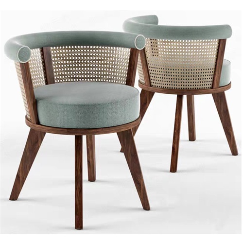 咖啡廳實(shí)木布藝軟包藤編靠背椅