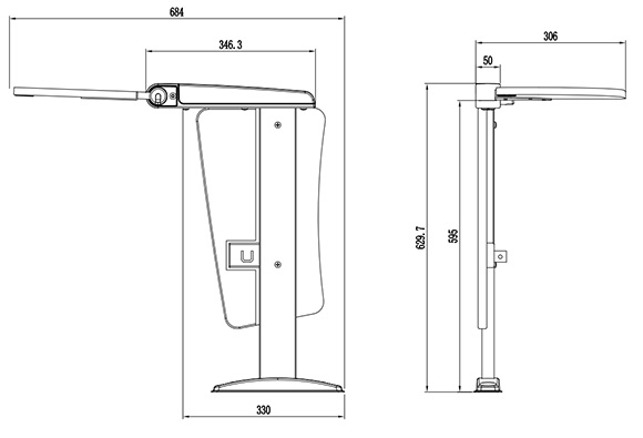 寫字板采用鋁合金翻轉(zhuǎn)機構(gòu),扶手蓋為PP一體注塑成型,需提供站腳小樣一套。