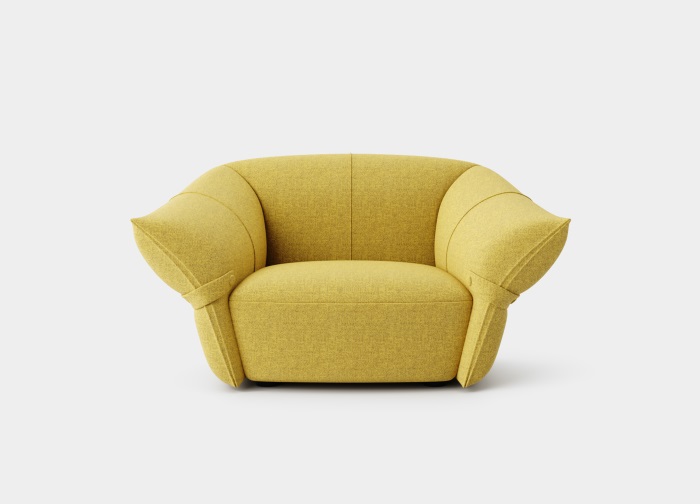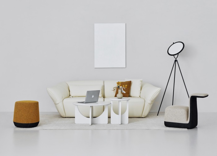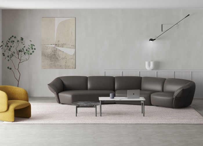 花朵盛開時,花瓣和花蕊會展開,設(shè)計(jì)師從花朵的外觀形象中提煉出花瓣盛開時的姿態(tài),并應(yīng)用到沙發(fā)的設(shè)計(jì)中。沙發(fā)的扶手采用了往外張開的形狀,類似于花朵的花瓣展開的姿態(tài),同時扶手上還有滾邊點(diǎn)綴,使得整個沙發(fā)看起來更加生動有靈性。此外,沙發(fā)的扶手還可以作為靠背傾靠,滿足人們側(cè)坐時的需求。兩側(cè)拉扣的設(shè)計(jì)將外張的扶手往回收攏,猶如花瓣被花托收攏的形態(tài),使得產(chǎn)品設(shè)計(jì)更加完整,有生命力。