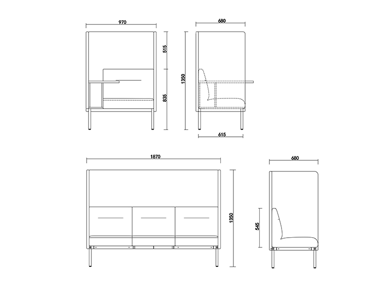 Santo Highback Sofa桑特圍合沙發(fā)是在桑特模塊沙發(fā)的基礎(chǔ)上,增加了圍合的軟包屏風(fēng),以及書(shū)寫(xiě)板模塊,更加適用于現(xiàn)代提倡的休閑私密辦公模式。