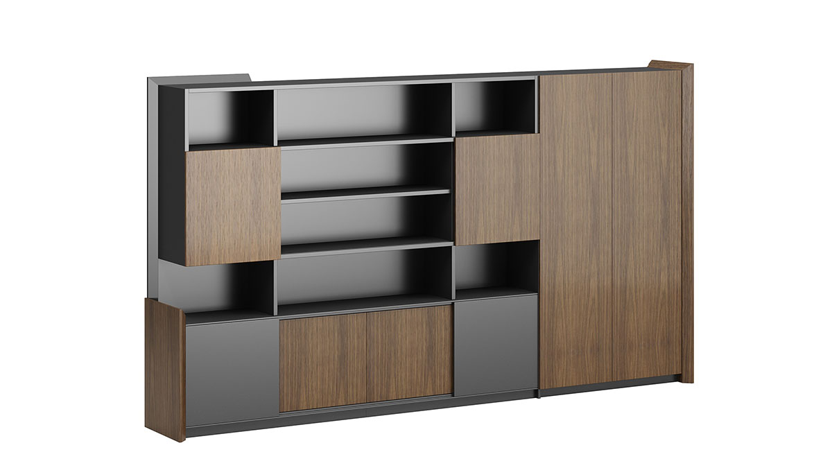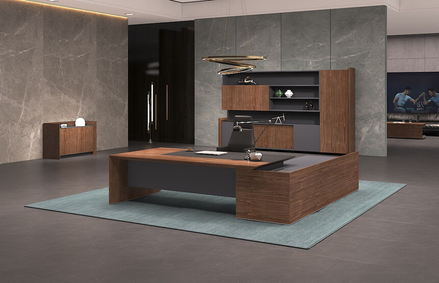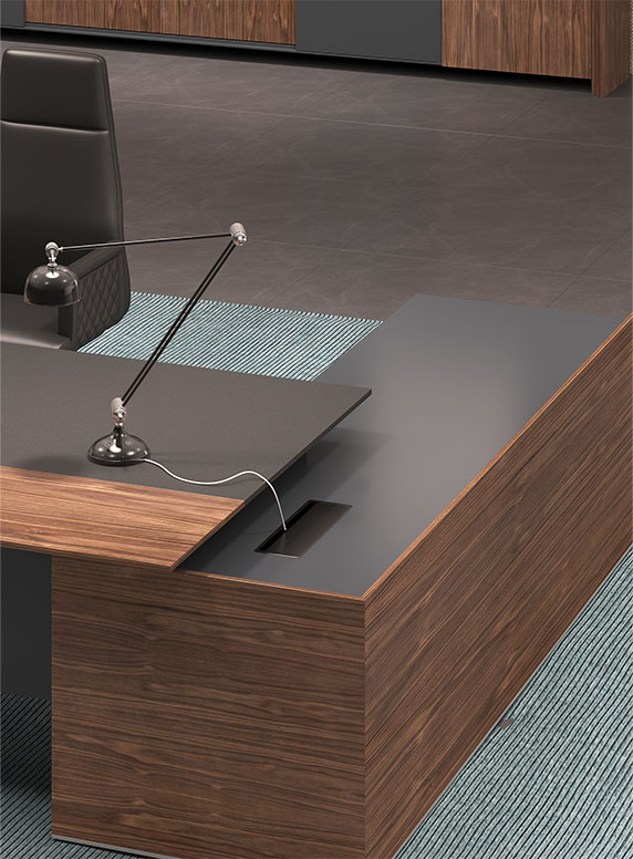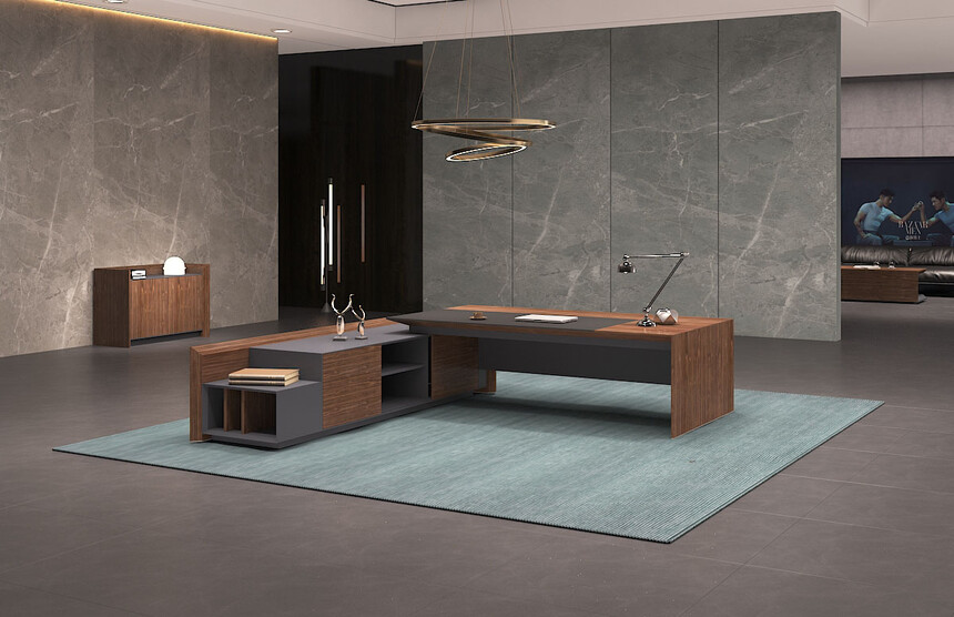 產(chǎn)品的設(shè)計上斜切面元素應(yīng)用一脈相承,且通過天然胡桃木 紋、灰咖金屬漆及超纖皮革的有機(jī)結(jié)合,呈現(xiàn)出極致簡約之 范,但又不失穩(wěn)重大氣之感,恰好的適應(yīng)現(xiàn)代商務(wù)辦公需求。