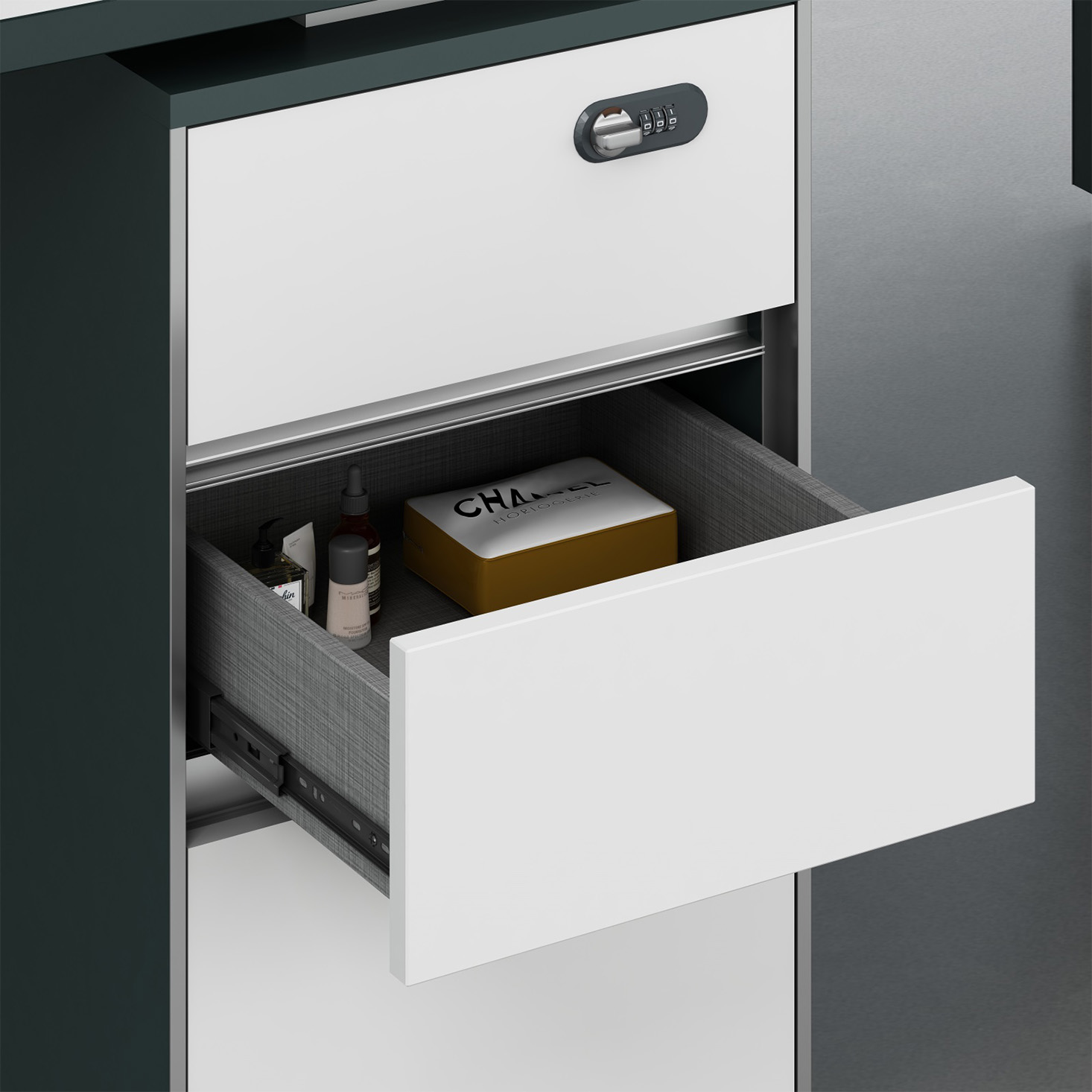 A:澳洲尤加利+進(jìn)口暖白 B:進(jìn)口暖白+暗夜綠 不含桌屏(抽屜帶密碼鎖)